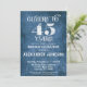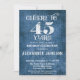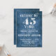 45th Birthday Invitation Blue Linen Rustic Cheers