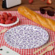 45th Birthday Random Number Pattern Purple/White Paper Plate