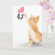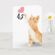 Gold tabby cat with pink heart balloon for 45th birthday on white background.