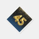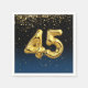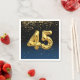 Gold mylar party balloons on gradient black and blue with gold star confetti for 45th anniversary or birthday party.