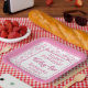 This unique numeric design features a pink and white random number pattern with the milestone number 45 displayed in various sizes and angles. A white rounded square serves as the centre for your text, surrounded by a pink and white frame.