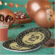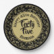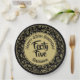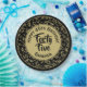 This over-the-hill design has a gold random number pattern with milestone 45 repeated in varied sizes and angles for an all-over print. There is a gold circle in the centre for your text and black and gold rings around the rim.