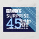45 YEARS BLUE PATTERN Here's a trendy save the date diagonal design with fun lettering for a SURPRISE birthday party. Modern and elegant! All text is totally customisable, so also suitable for a 41 42 43 44 45 46 47 48 and 49 year birthday, or any other year you need.