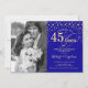 45th Wedding Anniversary Invitation with Photo. Elegant design in gold and sapphire royal blue with script font and confetti. Can be customized to show any year of marriage. Cheers to 45 years!