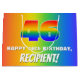 This vibrant and joyful birthday themed gift bag design features a large number “46” with a colourful rainbow spectrum inspired gradient pattern, along with the message “HAPPY 46th BIRTHDAY,”, and a custom recipient name. The background also features an exciting multicolored rainbow spectrum inspired gradient pattern. Birthday themed giftbags like this might be used when giving gifts or presents in celebration of somebody’s forty sixth birthday. [~Z0000577]