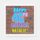 This fun birthday-themed paper napkin design features the message “HAPPY 46TH BIRTHDAY,” having a colourful, vibrant, urban street art and graffiti inspired look, along with a custom recipient name. The background features a brick wall inspired pattern. Paper napkins like this might be used at a party for somebody who is celebrating their forty sixth birthday. [~Z0000534]