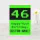 The front of this fun and geeky birthday themed greeting card design features a large green retro computer game style number "46". It also features the birthday greeting message "Happy 46th Birthday,", and a name that can be customized. The inside features a customizable birthday greeting message, or could perhaps be cleared and left blank if a message is to be written by hand instead. A fun and nerdy birthday greeting card like this might be used to send a birthday greeting message in honor of the forty sixth birthday of a scientist, a computing historian, or somebody who enjoys video gaming. [~Z0000430]