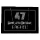 This 1920s/1930s look inspired vintage style birthday giftbag design features a large art deco look inspired number "47", the message "Happy 47th Birthday,", an editable name, and a border pattern consisting of thin lines. It also has a black-coloured background. A birthday themed gift bag like this might be used to wrap a gift or present being given to somebody who is celebrating their 47th birthday. [~Z0000497]