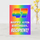 The front of this exciting and fun birthday greeting card design features a large number “47” with a rainbow spectrum inspired gradient pattern, along with the message “HAPPY 47th BIRTHDAY,”, and a customizable name. The background on the front also has a cheerful multicolored rainbow spectrum gradient pattern. The inside has an editable birthday greeting message, or could perhaps be cleared and left blank if a message is to be written by hand instead. A joyful, personalized birthday greeting card like this might be a fun way to deliver birthday greetings to somebody who is celebrating their forty-seventh birthday. [~Z0000570]