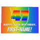 This fun and vibrant birthday-themed gift bag design features a large number “47” with a colourful rainbow spectrum inspired gradient pattern, along with the message “HAPPY 47th BIRTHDAY,”, and a custom recipient name. The background also features a joyful multicolored rainbow spectrum inspired gradient pattern. Giftbags like this might be used when wrapping gifts being given to somebody in celebration of their forty seventh birthday. [~Z0000577]