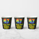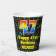 This cheerful and colourful music themed birthday paper cup design features a large number “47” with a rainbow spectrum gradient inspired pattern, along with the message “Happy 47th Birthday,”, and a custom name. The background features a colourful pattern having music notes and symbols of various colours and sizes. Vibrant, colourful paper cups like this might be fun to have at a birthday celebration/party being held to honour somebody’s forty seventh birthday. [~Z0000541]