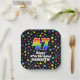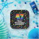This fun and colorful birthday themed paper plate design features a large number “47” having a rainbow spectrum gradient inspired pattern. It also features the message “Happy 47th Birthday,”, and a personalized name. The background features a colorful pattern featuring many star shapes with different colors and sizes. Paper plates like this might be used at a birthday party held in celebration of somebody’s 47th birthday. [~Z0000582]