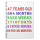 47th birthday counting down the years, days, months, hours, and minutes. A birthday present to give pause for thought! Leap years have been taken into account!
