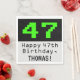 This fun and nerdy birthday paper napkin design features a large green vintage computer gaming style number "47" on a black coloured background. It also features the birthday greeting message "Happy 47th Birthday,", and a name that can be personalised. Fun and geeky paper napkins like this might be used at a party being held to celebrate the forty seventh birthday of an engineer, a computing historian, or somebody who really likes vintage video games. [~Z0000404]
