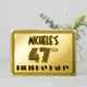 The front of this 1920s-1930s style inspired forty-seventh birthday party foil invitation card design features a personalised name, a fancy art deco look inspired number “47th”, the message “BIRTHDAY PARTY”, and a border pattern consisting of lines. The back features personalised details about the event, such as the date, time, location, and any other important information. Luxurious, stylish, editable invitations like these might be used to invite guests/attendees to a birthday gathering being held in celebration of somebody’s 47th birthday. [~Z0000594]
