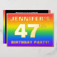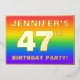 The front of this eye-catching and exciting forty-seventh birthday party/celebration foil invitation card design features an editable name, a large number “47th”, the message “BIRTHDAY PARTY!”, and a border. The background of the front has a joyful, multicolored, rainbow spectrum inspired gradient pattern. The back features personalised details about the event, such as the date, time, venue, and any other information that may be important. Personalised invitations like these might be a fun way to invite attendees to a birthday party being held in celebration of somebody’s 47th birthday. [~Z0000599]