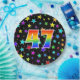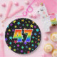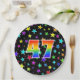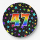 This cheerful, fun, and colourful paper plate design features a large number "47" containing a rainbow spectrum gradient inspired pattern colouring. The background features a colourful pattern of star shapes. Fun paper plates like this might be used at somebody’s forty seventh birthday celebration, or a couple’s 47th anniversary party, or some other 47th event. [~Z0000493]