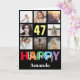 47th Happy Birthday Photo Collage Modern Black Card with personalised name. For further customisation, please click the "Customise it" button and use our design tool to modify this template.