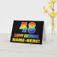 The front of this colourful, fun, and cheerful birthday themed greeting card design features a large number "48" and the message "HAPPY BIRTHDAY,", both having a rainbow spectrum gradient inspired pattern colouring, along with a bold yellow custom recipient name. The front also has a minimal, plain, black coloured background. The inside features a personalised birthday greeting message, or could perhaps be cleared and left blank if a message is to be written by hand instead. An exciting customisable birthday card like this might be a fun way to send a message in celebration of somebody’s forty eighth birthday. [~Z0000472]