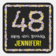 This floral, botany-inspired birthday themed square sticker design features the message “Happy 48th Birthday,” along with a customisable recipient name. The large number “48” and the border both feature flower icons. Fun birthday themed stickers like these might be used or distributed at a party for somebody who is celebrating their forty-eighth birthday, or perhaps used when preparing invitations or gifts/presents for such an event. [~Z0000652]