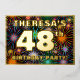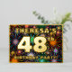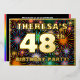 The front of this upbeat forty-eighth birthday party foil invitation card design features a personalised name, a large number “48th”, the message “BIRTHDAY PARTY!”, and a border. The background of the front has an exciting, colourful pattern that resembles bursting celebratory fireworks. The back features personalised details about the event, such as the date, time, location/venue, and any other relevant information. Editable invitations like these might be a fun way to invite guests/attendees to a birthday gathering/party being held in celebration of somebody’s 48th birthday. [~Z0000602]