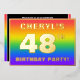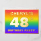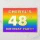 The front of this fun and eye-catching forty-eighth birthday party foil invitation card design features a personalised name, a large number “48th”, the message “BIRTHDAY PARTY!”, and a border. The background of the front has a vibrant, colourful, rainbow spectrum inspired gradient pattern. The back features personalised details about the event, such as the date, time, place/venue, and any other information that may be relevant. Customised invitations like these might be a fun way to invite guests/attendees to a birthday gathering being held in celebration of somebody’s 48th birthday. [~Z0000599]