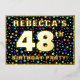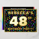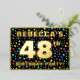 The front of this eye-catching and upbeat forty-eighth birthday celebration/party foil invitation card design features a customisable name, a large number “48th”, the message “BIRTHDAY PARTY!”, and a border. The background of the front features a joyful, multicolored pattern of stars. The back features personalised details about the event, such as the date, time, location/venue, and any other relevant information. Personalised invitations like these might be a fun way to invite guests/attendees to a birthday party/gathering being held in celebration of somebody’s 48th birthday. [~Z0000600]