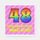 This cheerful and upbeat 48th birthday themed paper napkin design features a large number "48" having a colourful rainbow spectrum inspired gradient pattern. It also features the message "Happy 48th Birthday,", and a customisable name. The background features a dark pink and light pink stripes pattern containing loving pink heart shapes. Fun, personalised paper napkins like this might be used at a party being held to celebrate somebody’s 48th birthday. [~Z0000417]