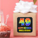 This colourful, fun, and cheerful birthday themed sticker design features a large number "49" and the message "HAPPY BIRTHDAY,", both coloured with a rainbow spectrum gradient inspired pattern, along with a bold yellow custom name. The background is coloured black. Fun stickers like this might be used when wrapping gifts being given to somebody in celebration of their 49th birthday, or perhaps maybe be given out to the attendees at a birthday celebration or party. [~Z0000480]