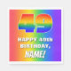 This exciting and vibrant birthday-themed paper napkin design features a large number “49” with a colourful rainbow spectrum inspired gradient pattern, along with the message “HAPPY 49th BIRTHDAY,”, and an editable recipient name. The background also features a joyful multicolored rainbow spectrum inspired gradient pattern. Birthday themed paper napkins like this might be used at a birthday party celebrating somebody’s 49th birthday. [~Z0000573]