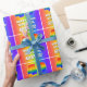 This joyful and fun birthday themed wrapping paper design features a large number “49” having a colourful rainbow spectrum inspired gradient pattern. It also features the message “HAPPY 49th BIRTHDAY,”, and a personalised recipient name. The background also features an exciting multicolored rainbow spectrum inspired gradient pattern. Birthday themed wrapping paper like this might be a fun way to wrap a gift or present being given to somebody who is celebrating their 49th birthday. [~Z0000572]