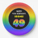 49th Birthday: Colourful Rainbow # 49, Custom Name Paper Plate