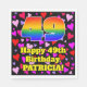 This cheerful and fun birthday paper napkin design features a large number “49” having a rainbow spectrum gradient inspired pattern. It also features the message “Happy 49th Birthday,”, and a custom name. The background features a pattern of heart shapes with colours like pink, purple, and red. Happy, friendly paper napkins like this might be fun to use at a birthday celebration/party being held to celebrate somebody’s forty ninth birthday. [~Z0000550]