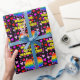 This cheerful and colourful birthday-themed wrapping paper design features a large number “49” having a rainbow spectrum gradient inspired pattern. It also features the message “Happy 49th Birthday,”, and a custom name. The background features a pattern of heart shapes with colours like purple, red, and pink. Wrapping paper like this might be a fun way of wrapping a birthday present or gift being given to somebody who is celebrating their forty ninth birthday. [~Z0000549]