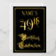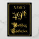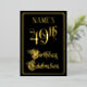 The front of this ornate, opulent, foil forty-ninth birthday celebration invitation design features the message “49th Birthday Celebration” in elegant script-style text. It also has a personalized name. The background of the front is colored black by default (although it can be customized to a different color). The back features personalized details about the event, such as the date, time, location, and any other relevant information. Fancy, elegant, customized invitations like these might be used to invite guests to a birthday party/celebration being held to honor somebody’s 49th birthday. [~Z0000589]