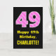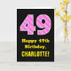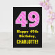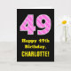 49th Birthday: Pink Stripes and Hearts "49" + Name Card