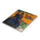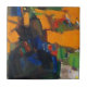 4.25 inch ceramic tile with painterly abstract design- detail from painting in yellow, green, deep grey and blue. and a bit of red... bold and dramatic.
