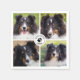 Personalizable pet photo template for four different photos. The middle has a paw print silhouette together with two personalizable text areas.