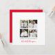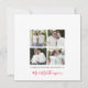 4 photo collage First Anniversary Custom Modern style with lots of white space for a contemporary touch to wish your partner a Happy First Anniversary with this fully customisable design. Your four favourite photos are in square format small and to the centre with your greeting below in simple sans lettering and your chosen greeting beneath in an elegant hand lettering style script. You can also personalise with your message on the back. Easily replace the sample photos in the template placeholders with your own. You can also change the background colours on either side if you wish via customise further.