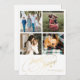 Elegant stylish Happy Holidays faux gold classic calligraphy script four square family photos simple white holiday card with your custom personalised text on both sides. +++++++++ PLEASE NOTE that the background colour is editable. You can change it after selecting CUSTOMIZE option down below the PERSONALIZE IT menu. If you don't feel at ease changing it, please ask Zazzle Live Design Service or the designer for help.