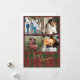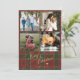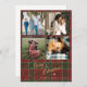 Elegant stylish Merry Christmas faux gold classic calligraphy script four square family photos rustic red green plaid tartan holiday card with your custom personalised text on both sides.