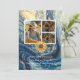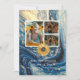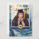 Modern 4 Photo collage Blue Marble Gold Swirl with Sunflower graduation announcement featuring a frame over your choice of photo. The backside features another photo and more details about your graduate.