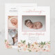 Sweet baby girl pale pink watercolor peonies floral bouquets four photo collage two-sided Birth Announcement. Simply add your precious baby's photos and details to complete this design. Composite design by Holiday Hearts Designs (rights reserved).