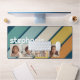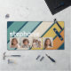 4 Photo Collage Retro Stripe - blue and gold Desk Mat