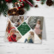 Share festive cheer with this 4-photo Christmas card featuring a creative angled layout and a charming central design. Each photo sits at a 45-degree angle in the corners, surrounding a diamond centre with three illustrated Christmas trees and the editable message “Merry Christmas from the [Surname] Family, December 20XX.”
