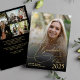 Elegant classic chic calligraphy script high school college university simple stylish black and gold graduation announcement with 4 custom photos and text template.