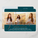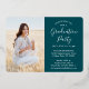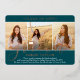 Invite family and friends to celebrate a high school or college graduation with stylish custom 4 photo collage teal, white and rose gold foil invitations. All pictures and wording are simple to personalise. (IMAGE PLACEMENT TIP: An easy way to centre a photo exactly how you want is to crop it before uploading to the Zazzle website.) Front of design is printed with real metallic foil on a blue-green background. It features a mortar board cap, handwritten style script calligraphy, elegant modern typography, and four photos of your choice, such as senior pictures or images from the commencement ceremony. This elegant graduation invitation card is a trendy and chic way to begin your special day celebration. Congratulations to the graduate!