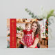 Modern holiday greeting card featuring a full-bleed customisable photo on the front with a red vertical overlay band on the left, highlighting the wording "Merry Christmas" in real gold foil.