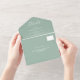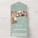 Chic sage green elegant classic call in one calligraphy wedding invitation with rsvp, accommodations, details, and more info. With a modern and trendy script, add 4 of your photos.