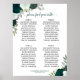 Make your wedding reception beautiful with this lovely wedding seating chart which boasts a rustic boho chic floral design. Delicately adorned with hand-painted watercolor roses in shades of emerald green and sage, this piece also showcases garden greenery and elegant eucalyptus leaves. Accommodating 40 guests, with 10 seats per table, it ensures a smooth and organised seating arrangement. The graceful script calligraphy title reads "please find your table" while the bottom section offers space to personalise it with the couple's names and wedding date.